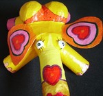 2004olifant van papier-maché,kosteloos materiaal. mijn doel was :vrolijkheid,eenvoud en kleur!