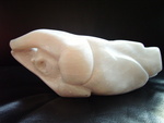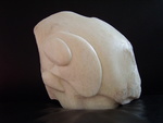 Omdat ik uitga van wat het toeval mij brengt ben ik met speksteen begonnen en met de vorm mee gaan raspen en vijlen. Vreemd genoeg kwam daar mijn eerst 'olifant'uit!